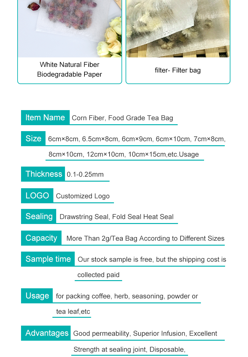 Environmental Natural Corn Fiber Heat Sealing Tea Bag,