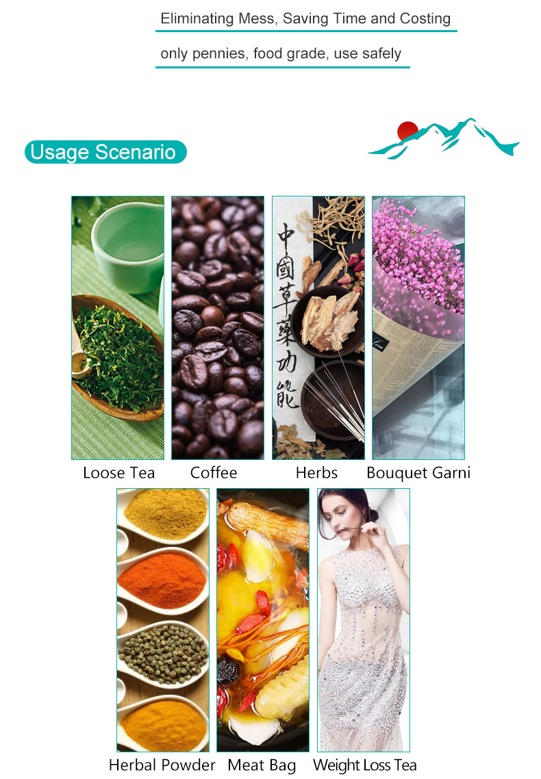 Cook soup:Put a variety of spices or herbs into the bag, tightly close the bag, and then put it into a pot to cook stew. As the small bag boilproof and the material is thin, effectively maintaining the original flavor to make the delicious broth. In addition, to avoid the groan various seasonings in the soup.